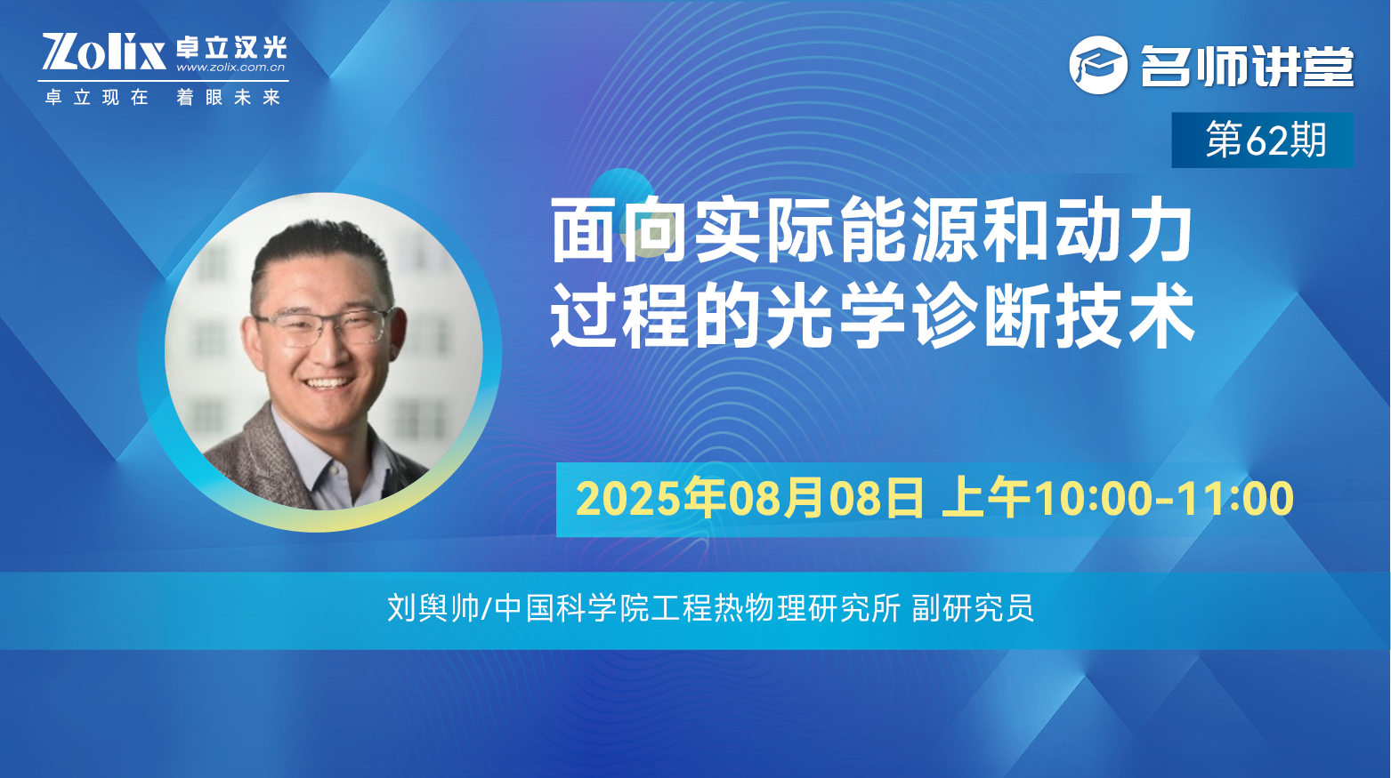 62期(qī)名師講堂馬上(shàng)就要開講啦!直播時間(jiān):8月8日上午10:00—11:00 主講老(lǎo)師:中國科學院工程熱物理研究所副研究員——劉輿帥 報告題目:《麵(miàn)向實際能源和動力(lì)過程的光學診斷技術》